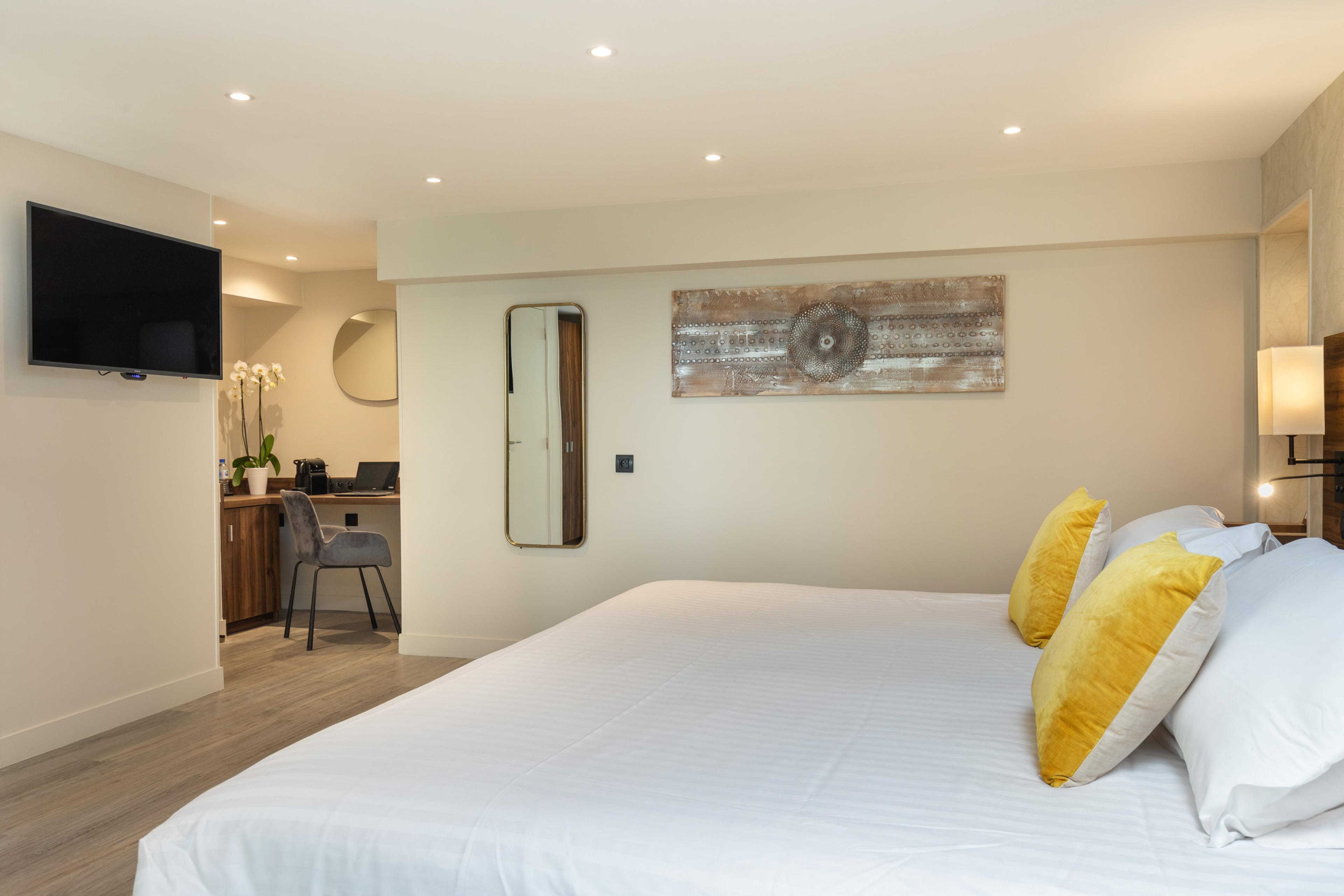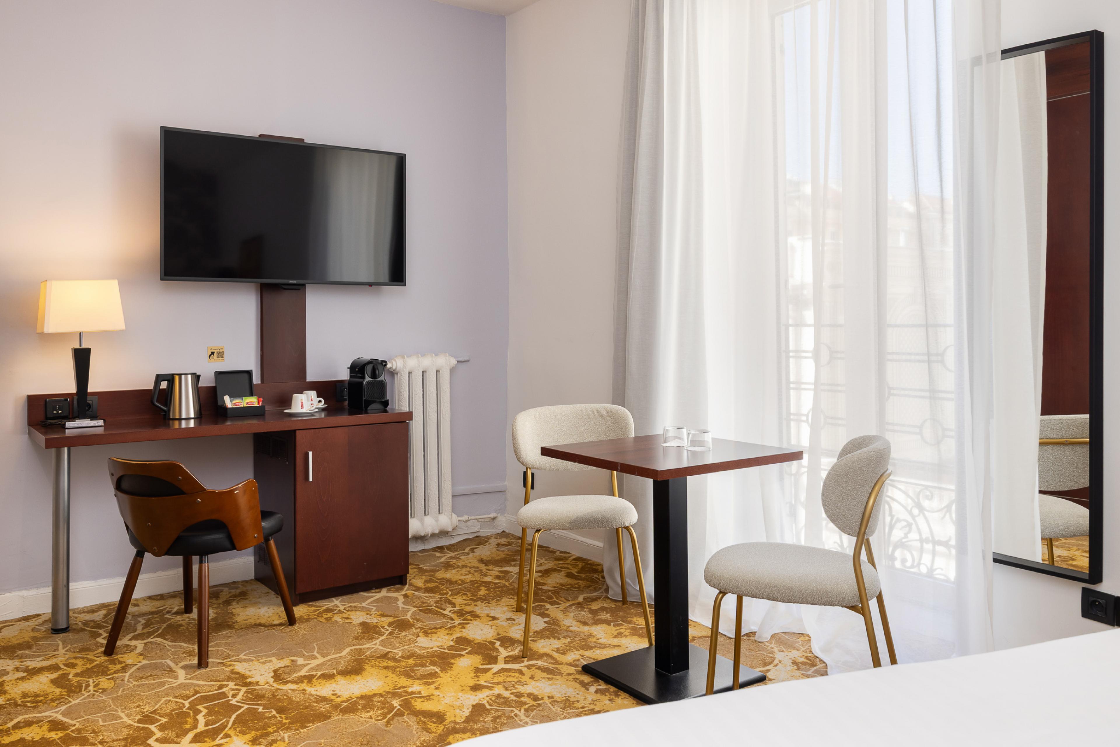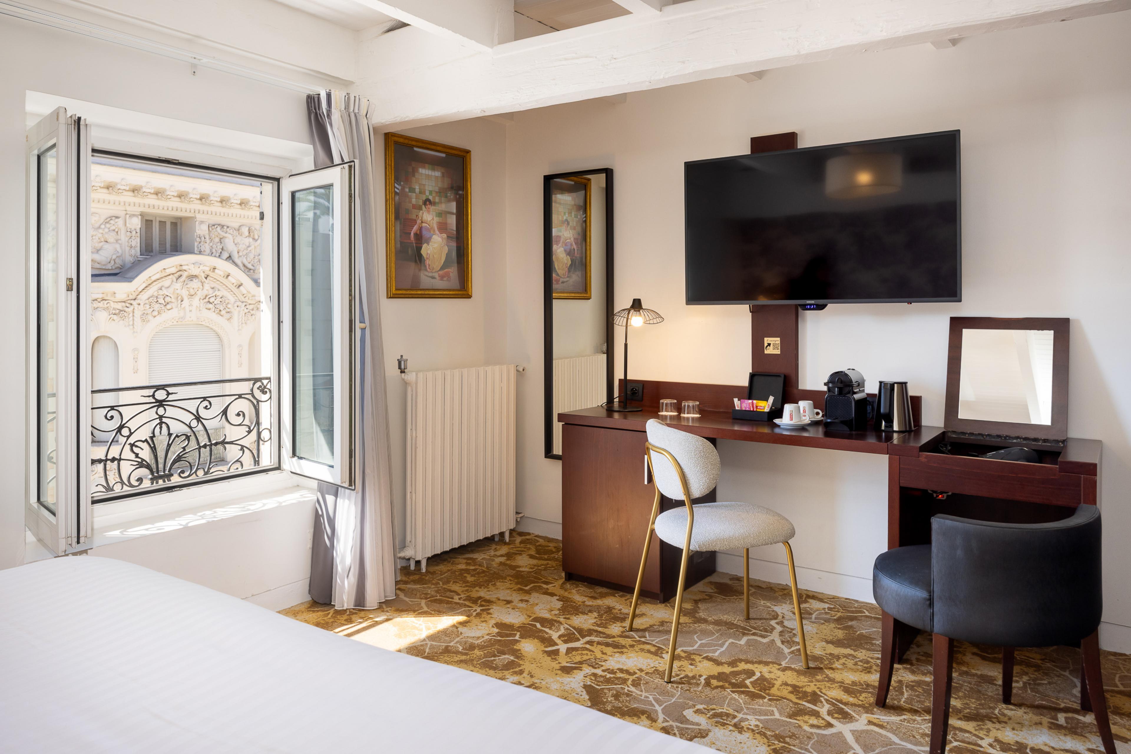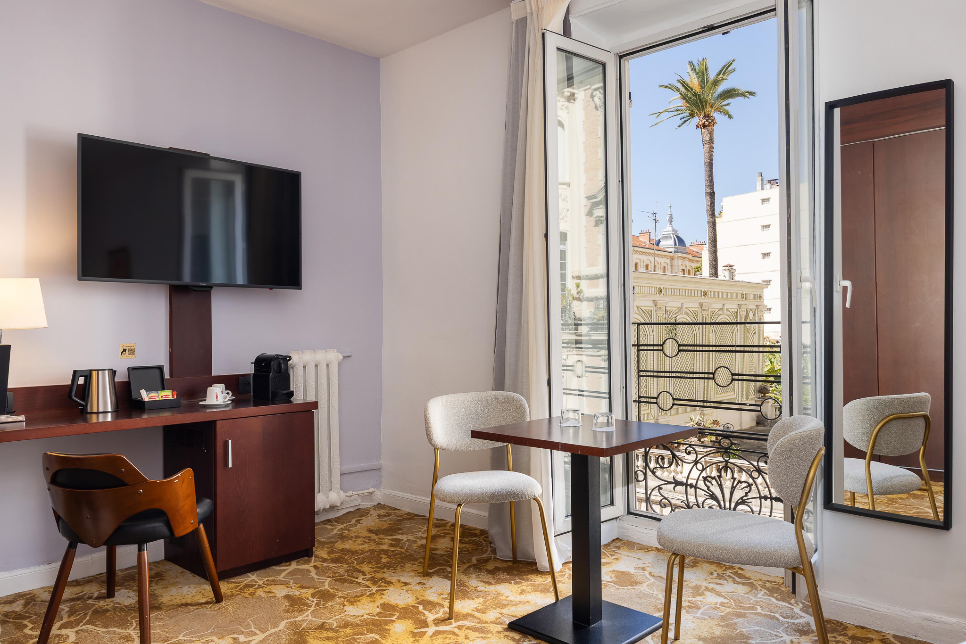 The sleek yet cosy Deluxe room is a haven of comfort in central Nice. Its soothing atmosphere is your ticket to time out and R&R. Get a good night's sleep in the Best Western Plus Hotel Brice Garden Nice's king-size bed and premium bedding.